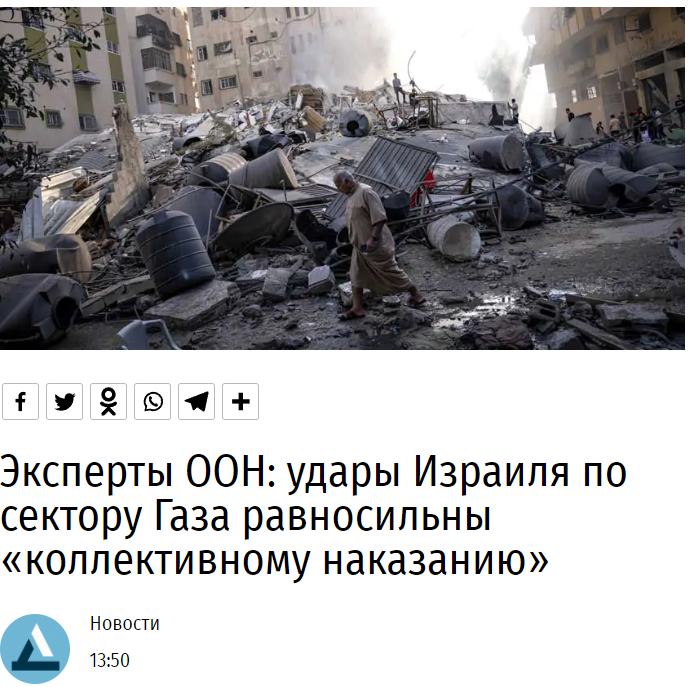 "Це рівносильне колективному покаранню. Немає жодного виправдання насильству, яке невибіркове і спрямоване проти безневинних цивільних осіб, чи то з боку ХАМАС, чи ізраїльських сил. Це абсолютно заборонено міжнародним правом і рівносильно військовому злочину", - йдеться у заяві групи експертів ООН.