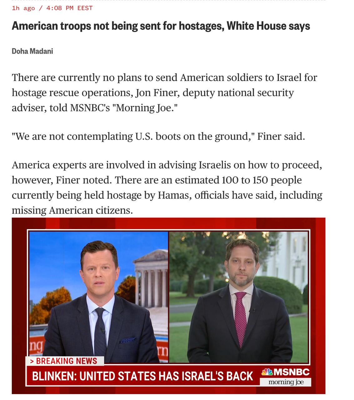 За оцінками чиновників, у заручниках ХАМАС перебувають 100-150 осіб, включаючи зниклих безвісти американських громадян.