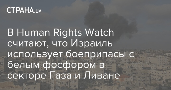 Організація Human Rights Watch заявила, що Ізраїль використовує боєприпаси з білим фосфором у секторі Газа та Лівані, що "наражає громадянське населення на ризик серйозних і довгострокових травм".