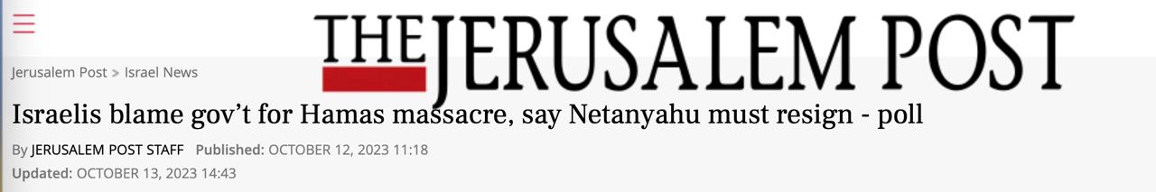 При цьому 56% опитаних заявили, що прем'єр-міністр Ізраїлю має піти у відставку після закінчення війни, причому 28% прихильників нинішнього уряду погодилися з цією думкою.
