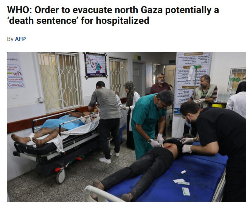 "ВООЗ рішуче засуджує неодноразові накази Ізраїлю про евакуацію 22 лікарень, в яких перебувають понад 2000 стаціонарних пацієнтів на півночі сектора Газа", - йдеться у заяві організації.