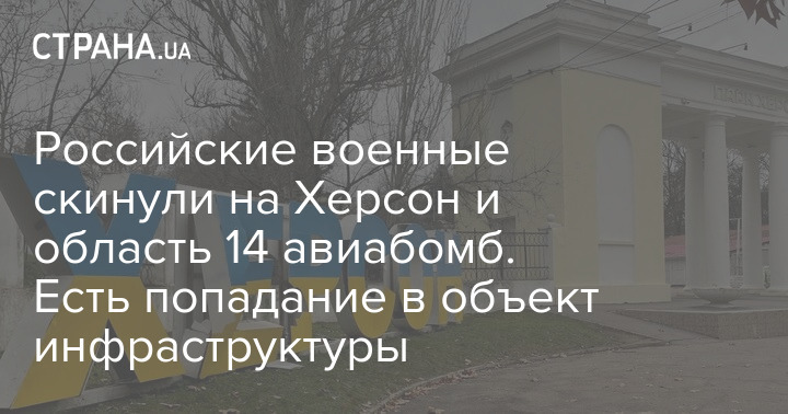 Російські військові скинули на Херсон та область 14 авіабомб. Є влучення в об'єкт інфраструктури