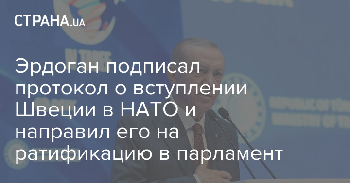 Президент Туреччини Реджеп Тайіп Ердоган підписав протокол про вступ Швеції до НАТО і направив його на ратифікацію до парламенту країни.