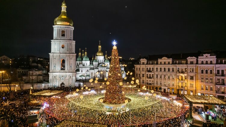 Минулого року головну ялинку країни встановили на Софійській площі у Києві, її запалили 17 грудня. Ялина була штучна, 12 метрів заввишки - втричі нижча, ніж у попередні роки. На її верхівці встановили тризуб замість традиційної зірки. Офіційно відкрили її через два дні, 19 грудня, на день святого Миколая.