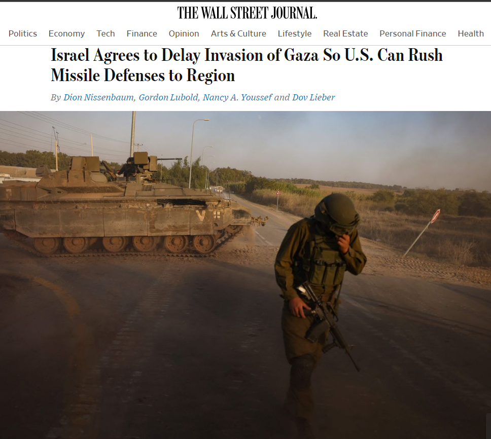 Ізраїль погодився відкласти свою наземну операцію у секторі Гази, щоб дозволити США посилити свою ППО на Близькому Сході.