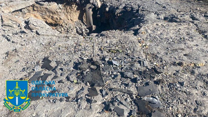 12:20 Фото воронки, яка утворилася після ранкового ракетного удару судноремонтним заводом під Одесою.