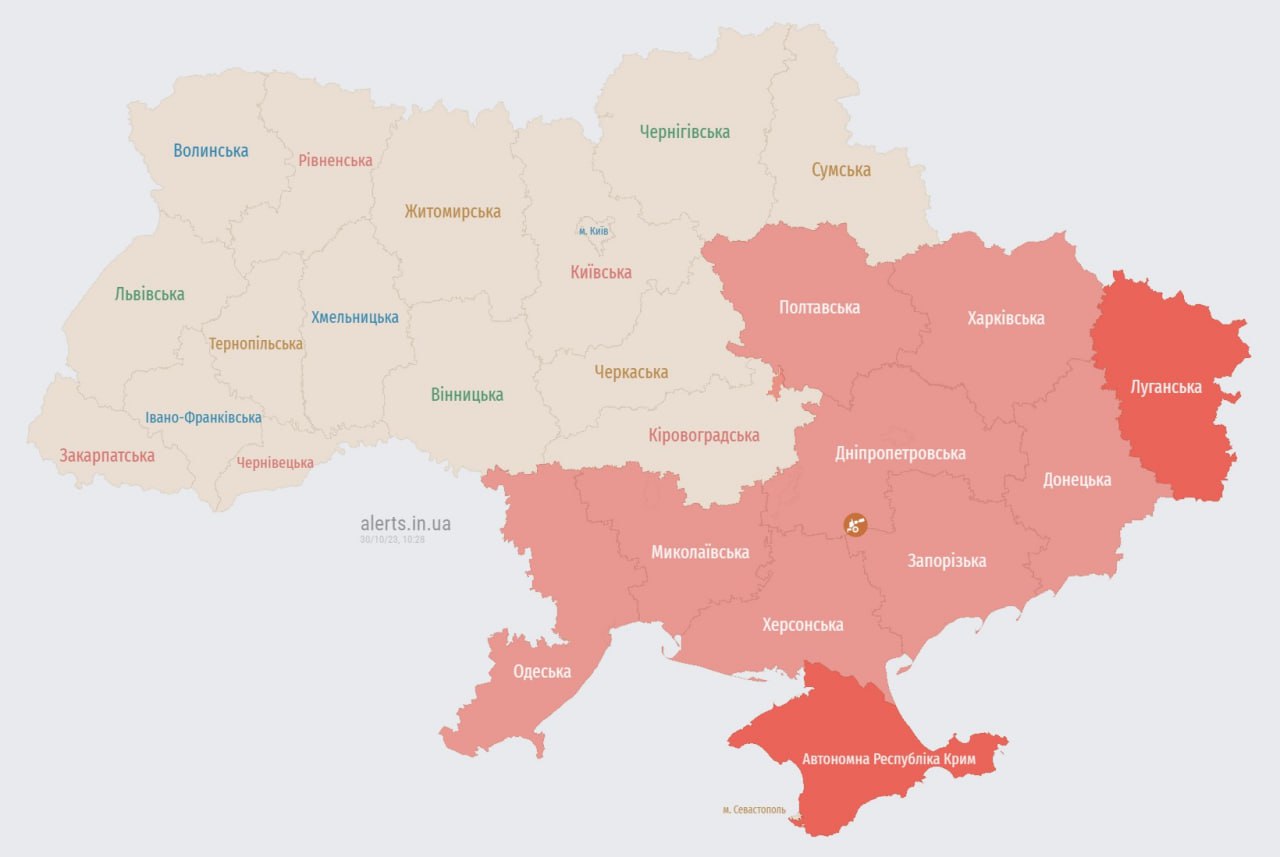 18:04 Повітряна тривога у п'яти областях через ракетну небезпеку.