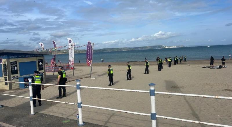 Поліція вивела з пляжу людей, які протестують намагаються прорвати поліцейський кордон.
