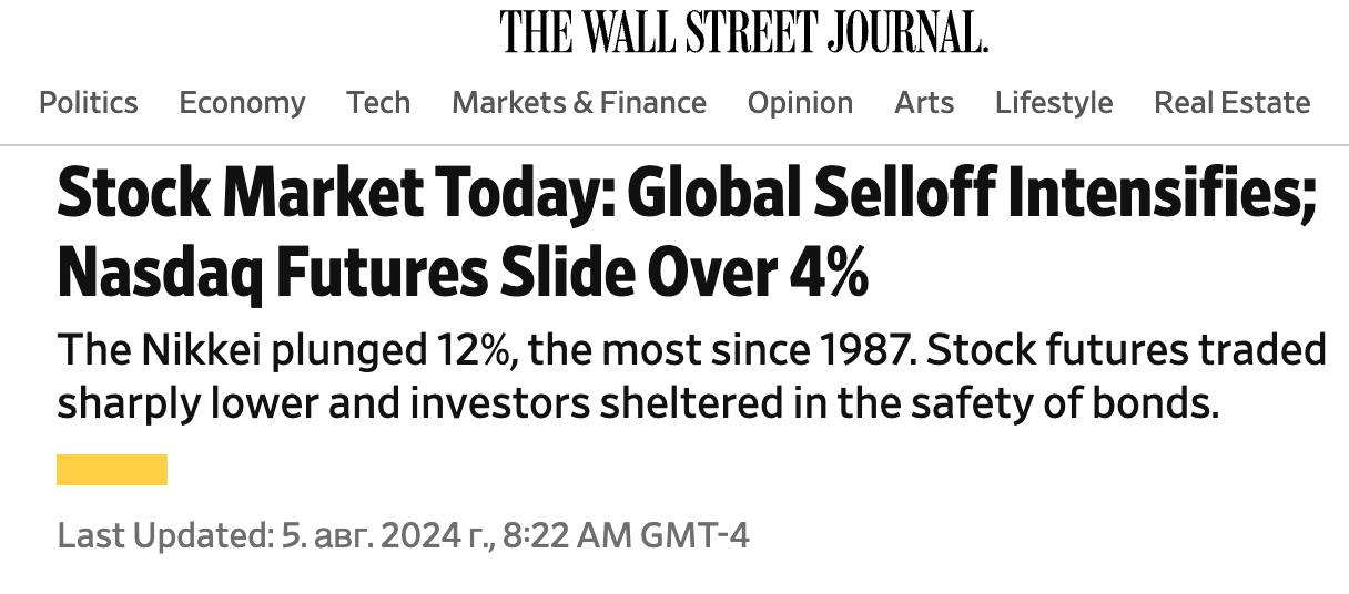 Причинами кризи експерти називають спад виробництва у США на тлі збільшення безробіття у липні та ескалацію на Близькому Сході. Інвестори також стурбовані тим, що Федеральна резервна система діє надто повільно і їй доведеться наздоганяти події, знижуючи ставки.
