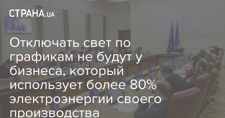 Кабінет міністрів затвердив постанову, за якою графіки відключень світла не будуть застосовуватися до компаній, що використовують понад 80% електроенергії власного виробництва.