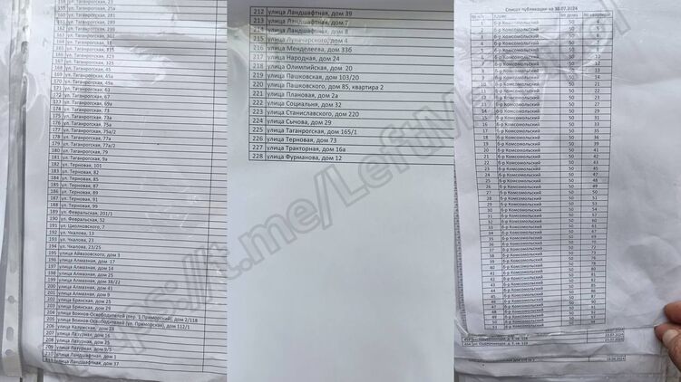 У списках на фото перераховано 211 квартир Лівобережного району Маріуполя.