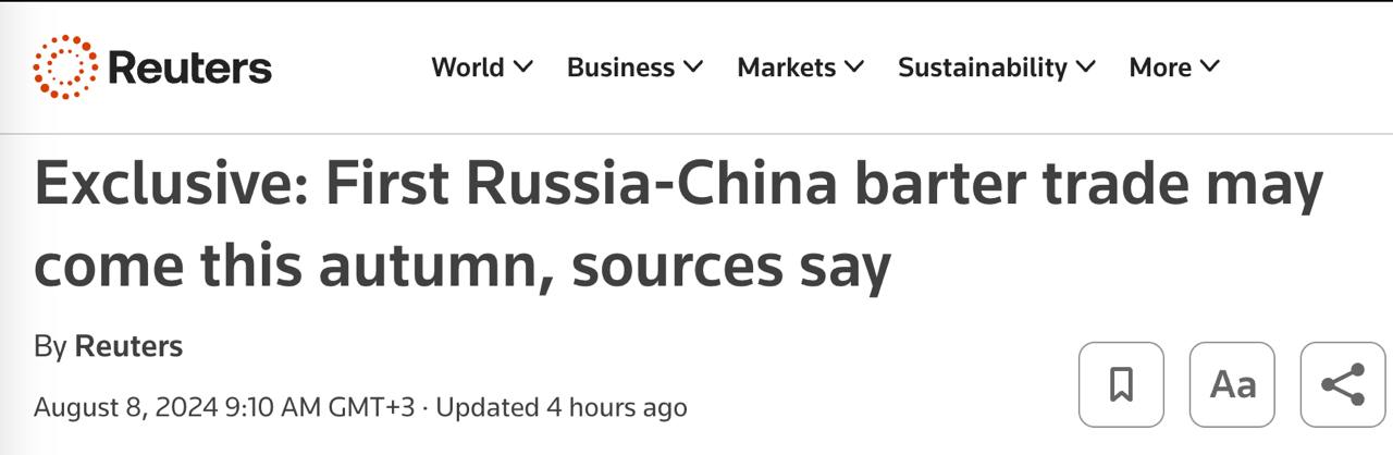 Росія та Китай восени можуть почати здійснювати бартерні угоди – прямий обмін товарами без грошей. Про це повідомляє новинне агентство Reuters із посиланням на власні джерела.