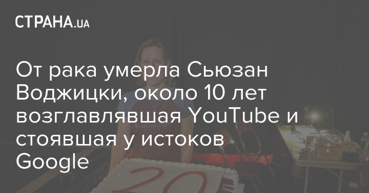 Від раку померла Сьюзан Воджицкі, яка близько 10 років очолювала YouTube і стояла біля витоків Google.