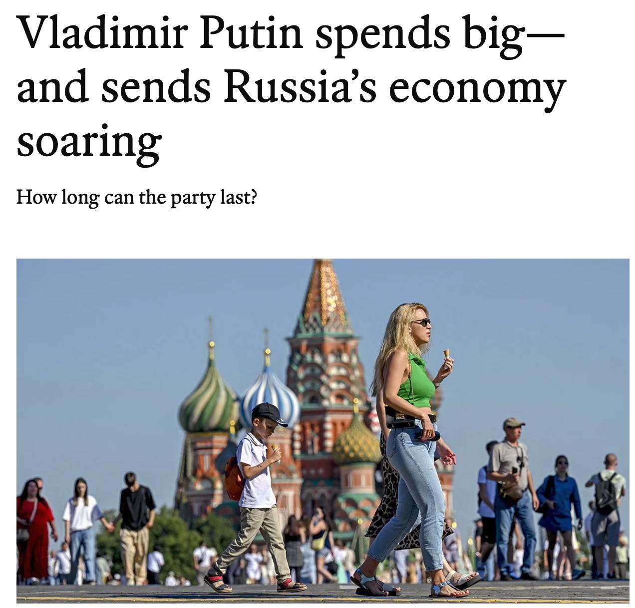 "Економіка прискорюється. Безробіття близьке до рекордно низького рівня, у рубля все добре. Щоправда, інфляція занадто висока - у червні ціни зросли на 8,6% у річному обчисленні, що значно вище за цільовий показник центрального банку в 4%, але зі зростанням грошових доходів на 14% у річному обчисленні купівельна спроможність росіян швидко зростає", - йдеться у статті.