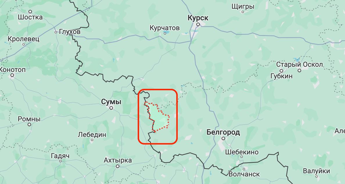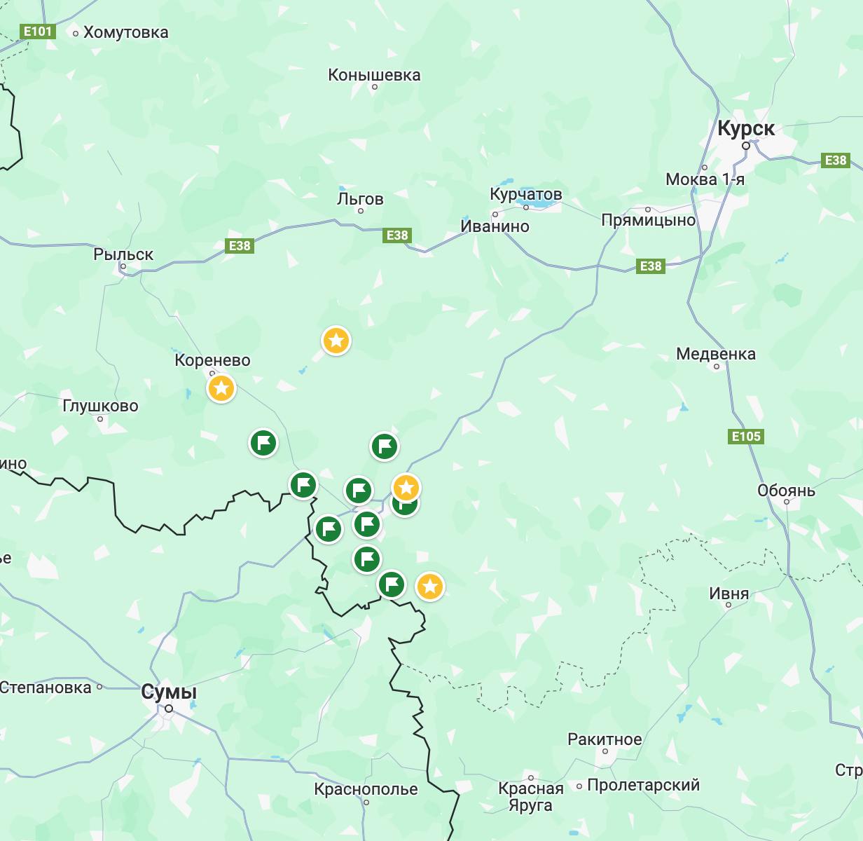 Також Москва стверджує, що українські війська присутні в районах Курилівки, Плехово, Любимівки, Суджі, Косиці, Гоголівки, Козачої Локні, Михайлівки та Свердляківки (на карті – зеленим). Там за ними заявлені удари.