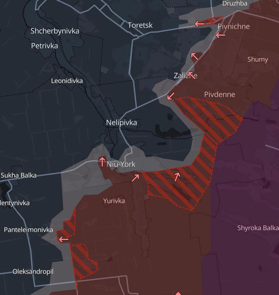 Також росіяни просунулися у бік Торецька від Дружби та на південний захід від Нью-Йорка – у бік Пантелеймонівки та Олександрополя.