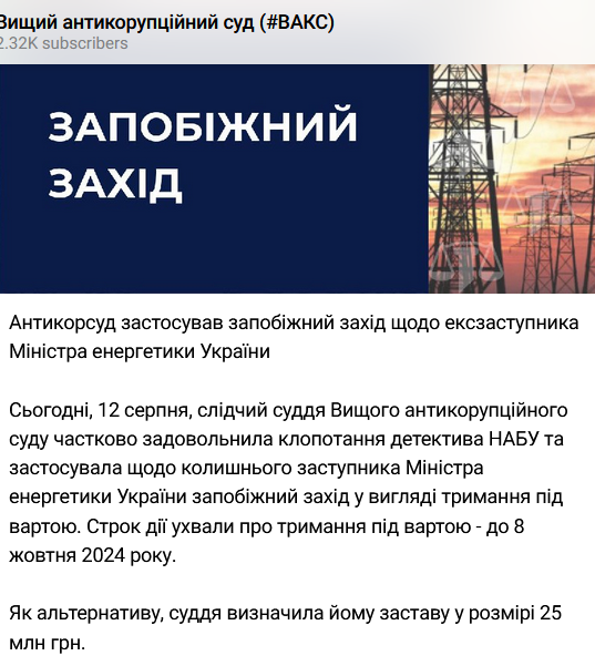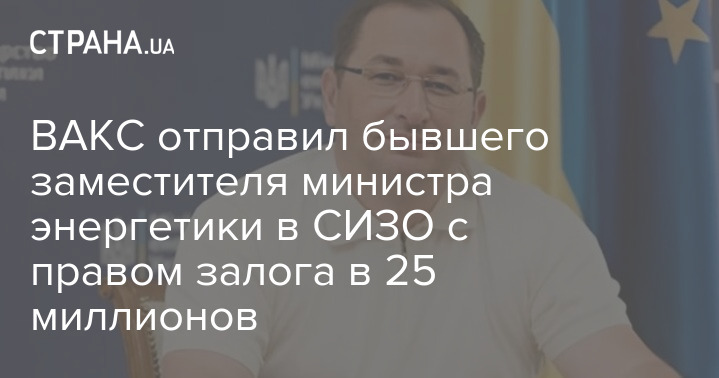 У разі невнесення застави колишній заступник міністра енергетики перебуватиме під вартою до 8 жовтня.