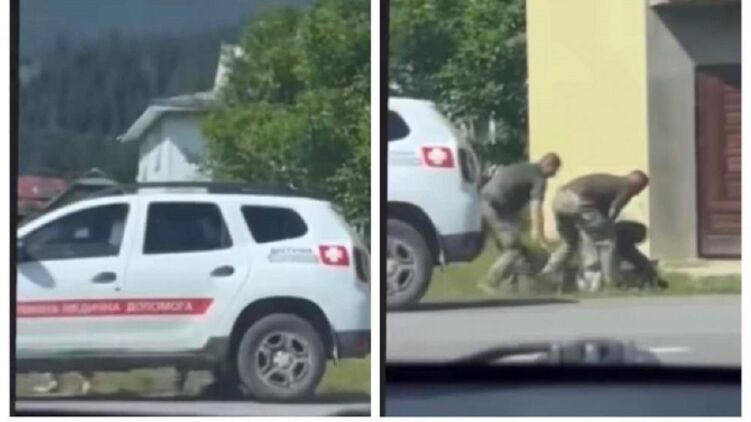 Громадянин відмовився сідати в машину та спробував піти. Тоді капітан і майор повалили його на землю, після чого насильно повели до автомобіля.