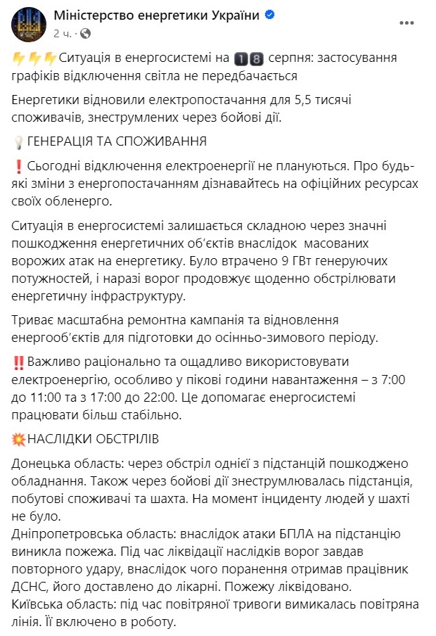 За його словами, спека повертається і складна погода може призвести до підвищення споживання. А система залишається вразливою після обстрілу, що може призвести до дефіциту електроенергії.