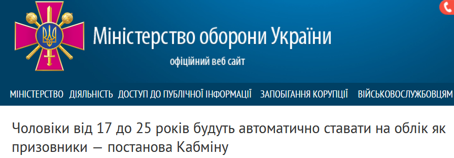 Чоловіки віком від 17 до 25 років автоматично зараховуватимуться на військовий облік призовників.