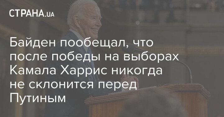 Президент США Джо Байден заявив, що кандидат на пост глави держави від Демократичної партії Камала Харріс у разі перемоги на майбутніх виборах "ніколи не схилиться" перед головою Кремля Володимиром Путіним.
