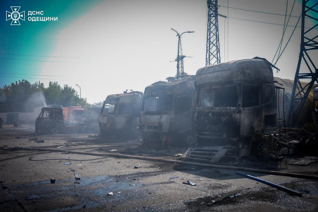 19.59 Близько 40 вантажівок згоріло сьогодні внаслідок ракетних ударів по Одесі.