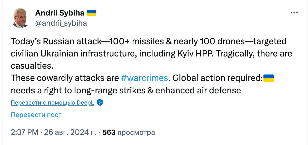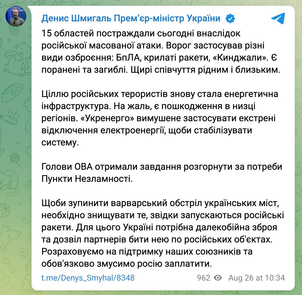 У понеділок, 26 серпня, в Україні триває 915-й день війни з Росією.