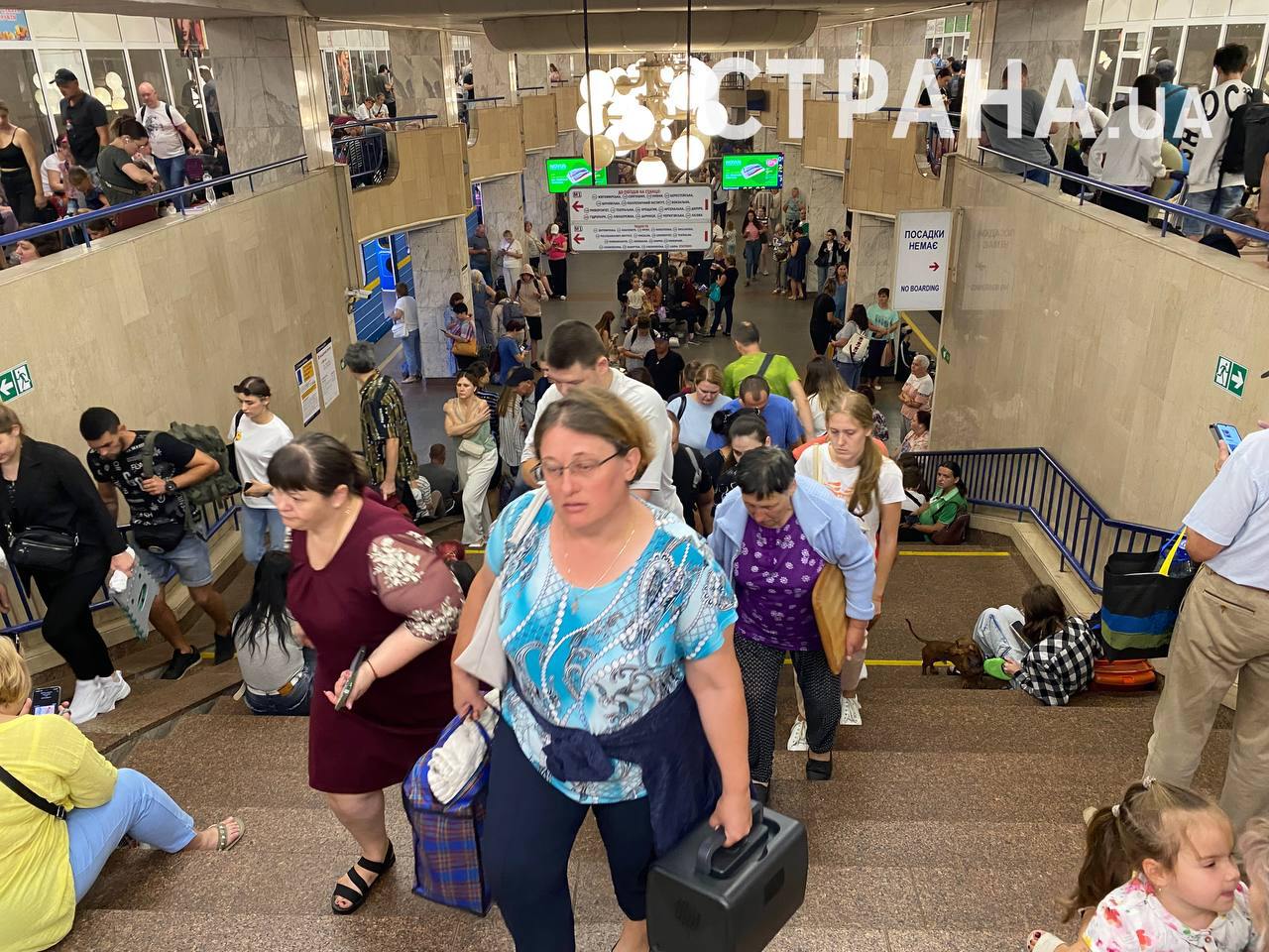 Станція двоповерхова, люди заповнили практично весь простір на платформі та на другому поверсі.