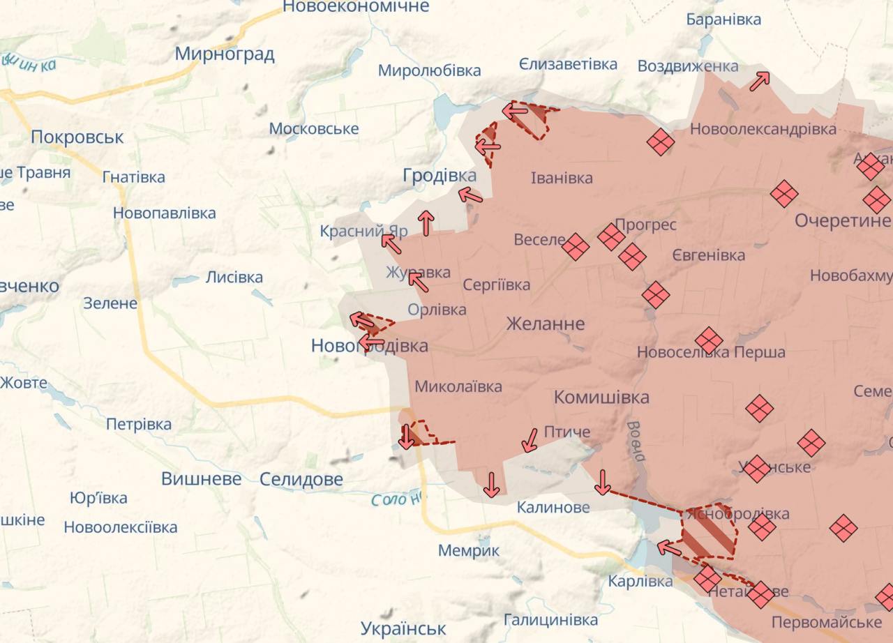 23.45 Росіяни захопили Пташине на Покровському напрямі, повідомляє Український військовий паблік Deep State.