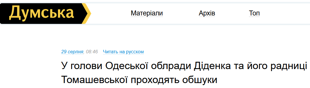 Національне антикорупційне бюро України (НАБУ) проводить обшуки у високопоставлених "Слуг народу" Одеси: голови обласної ради Григорія Діденка та депутата районної ради Лілії Томашевської.
