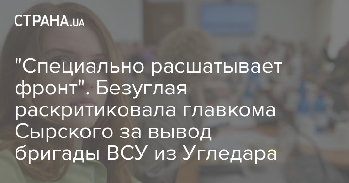 "Спеціально розхитує фронт". Безугла розкритикувала головкому Сирського за виведення бригади ЗСУ з Вугледару