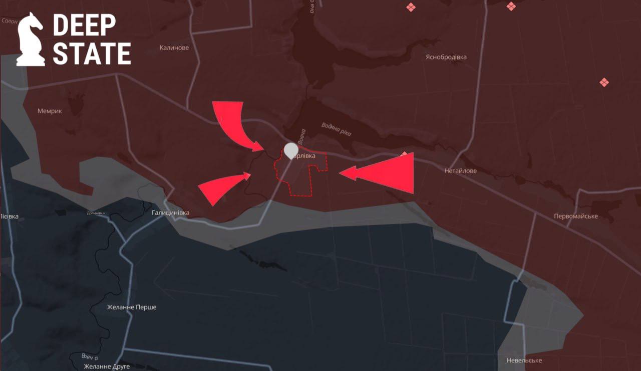 22 серпня росіяни розпочали масований штурм і Карлівка перейшла під їхній повний вогневий контроль. Через 2 дні через ризик оточення відійшла важка артилерія ЗСУ. 26-28 серпня через падіння оборони у Калинова, Пташиного та Мемрика росіяни зайшли в тил із західного боку Карлівки та увійшли до Галицинівки.