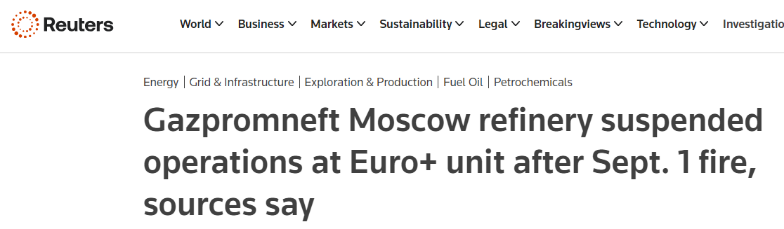 На Московському НПЗ після атаки дрона призупинено роботу об'єднаної установки переробки нафти - Reuters