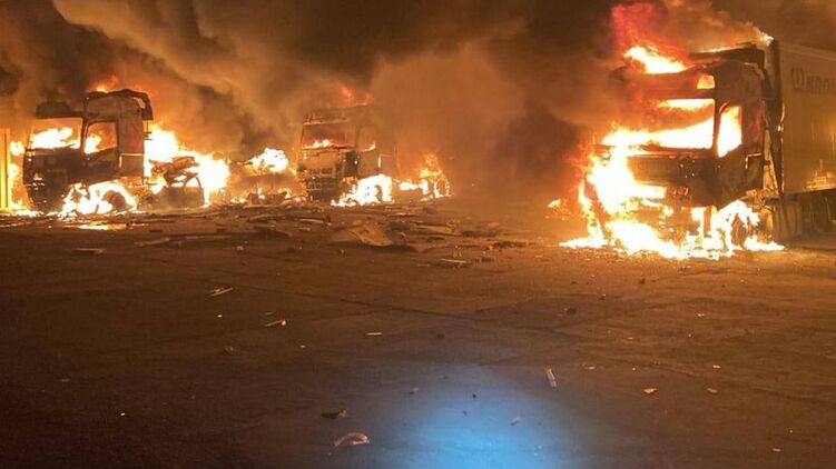 Сьогодні вночі дрони атакували Львів та у передмісті вдарили по підприємству. За даними обласної адміністрації, пожежа від уламків "Шахедів" знищила чотири вантажівки. Російські паблики заявили, що удар був по логістиці військових перевезень ЗСУ.