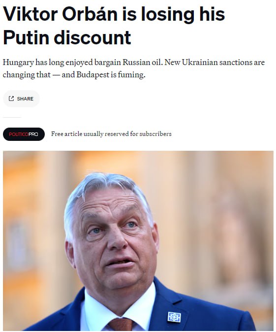 "Будапешт в люті". Угорщина втрачає вигідні ціни на російську нафту через санкції України - Politico
