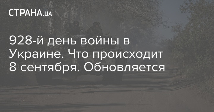 У неділю, 8 вересня, в Україні триває 928-й день війни з Росією.