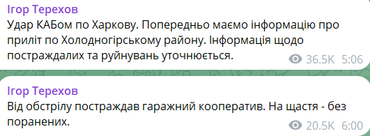 08:05 Сьогодні вночі росіяни вдарили КАБом по Холодногірському району Харкова. Про це повідомляє мер Ігор Терехов.