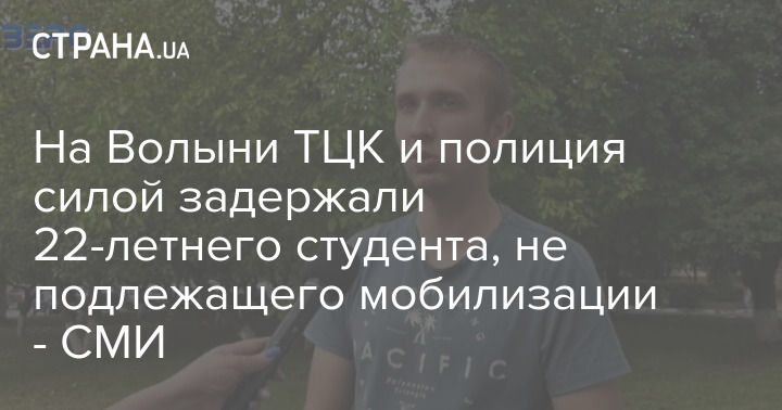 У Волинській області ТЦК та поліція силою затримали 22-річного студента, який не підлягає мобілізації. Про це повідомляють місцеві ЗМІ.