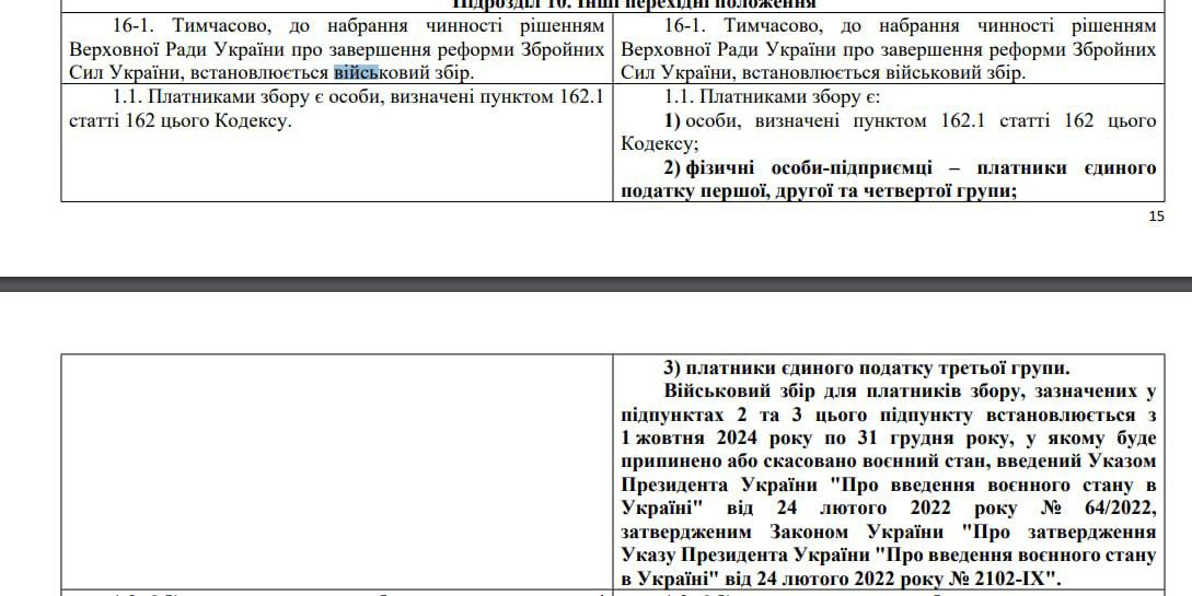 Ним підвищується низка податків, у тому числі й військовий збір із 1,5% до 5%. Депутати проголосували документ лише у першому читанні, його ще продовжать розглядати, і до кінця незрозуміло, в якій редакції його буде прийнято остаточно та підписано президентом. Однак його нинішній зміст може спровокувати відтік грошей населення з депозитних вкладів через підвищення оподаткування за ними.