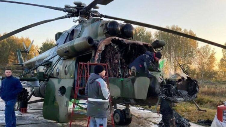 Наслідки підпалу вертольота. Фото: Telegram