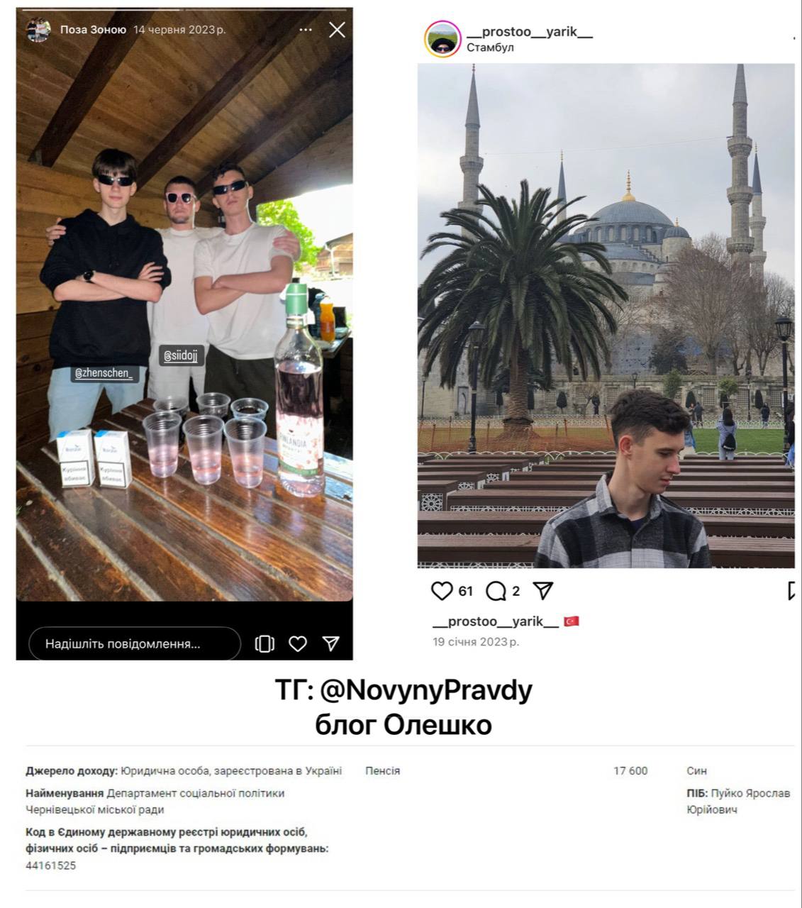 "Це дивно, коли син голови ТЦК почав їздити з дружбанами до Одеси на п'янку, тільки коли ти там головним став (фото за 28 серпня). До цього боявся? І як він у 2023 році, повнолітній, поїхав до Туреччини на відпочинок? " – написав Олешко, звертаючись до Пуйко-старшого.