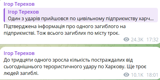 Сьогодні, 24 вересня, росіяни вдарили по Харкову авіабомбами. Загинуло троє людей, понад 30 отримали поранення.