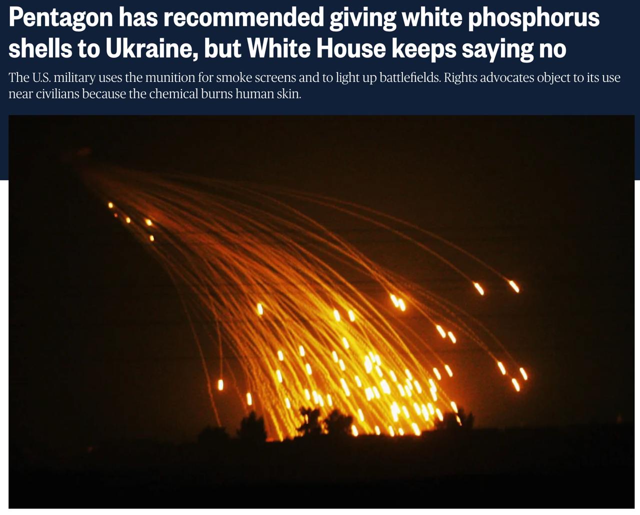 Пентагон рекомендував надати Україні снаряди із білим фосфором, Білий дім виступає проти.