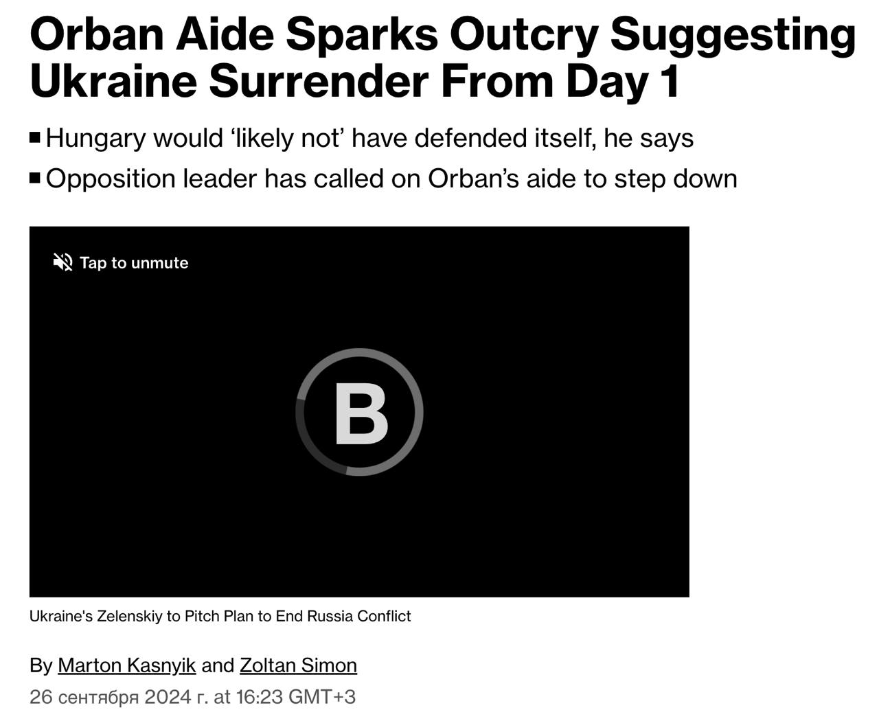 Як пише Bloomberg, ця заява помічника угорського прем'єра викликала "бурю обурення" серед противників чинного прем'єра.