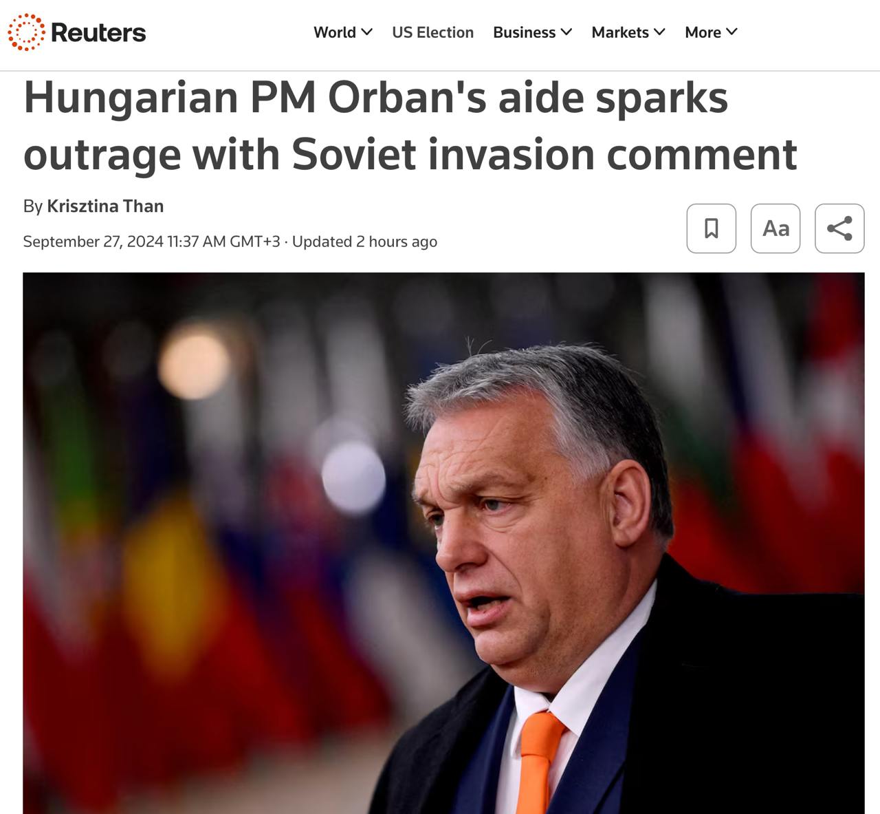 "Зараз мій політичний директор зробив двозначну заяву, що є помилкою, оскільки наша спільнота стоїть на основі революції 1956 року, зросла з неї", - прокоментував прем'єр Угорщини.
