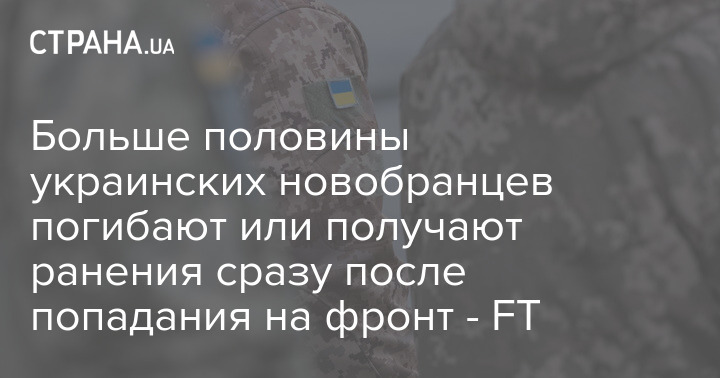 Збройні сили України (ЗСУ) втрачають убитими або пораненими більше половини новобранців одразу після потрапляння на фронт, повідомляє Financial Times.