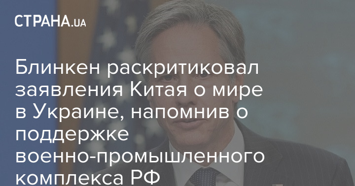 Блінкен розкритикував заяви Китаю про мир в Україні, нагадавши про підтримку військово-промислового комплексу РФ