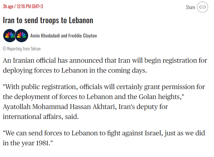 "Ми можемо відправити війська до Лівану для боротьби з Ізраїлем, як ми це зробили в 1981 році", - додав він.