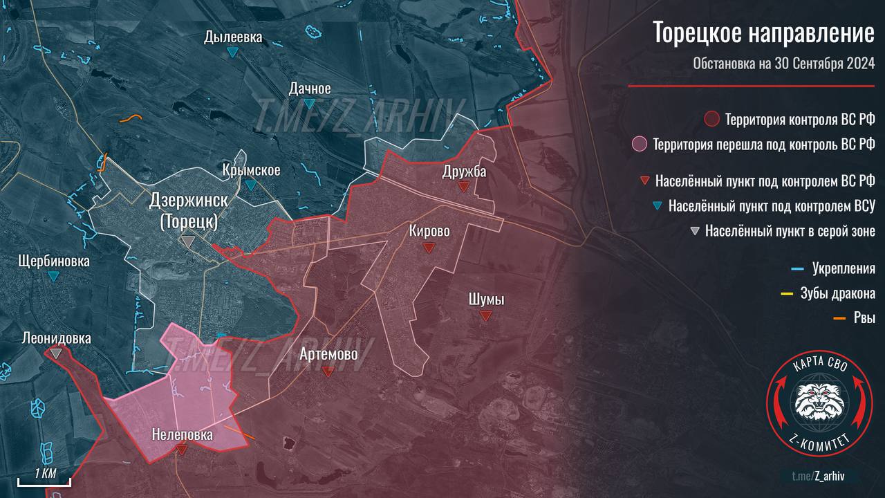 Сьогодні міноборони РФ заявило про захоплення російською армією села Нелипівка між Торецьком та Нью-Йорком. Російські паблики на своїх картах позначають село як повністю підконтрольне РФ. Якщо це справді так, то це означає, що росіяни витіснили українські сили з північної частини Нью-Йорка, яку ЗСУ нещодавно відбили під час контратаки.