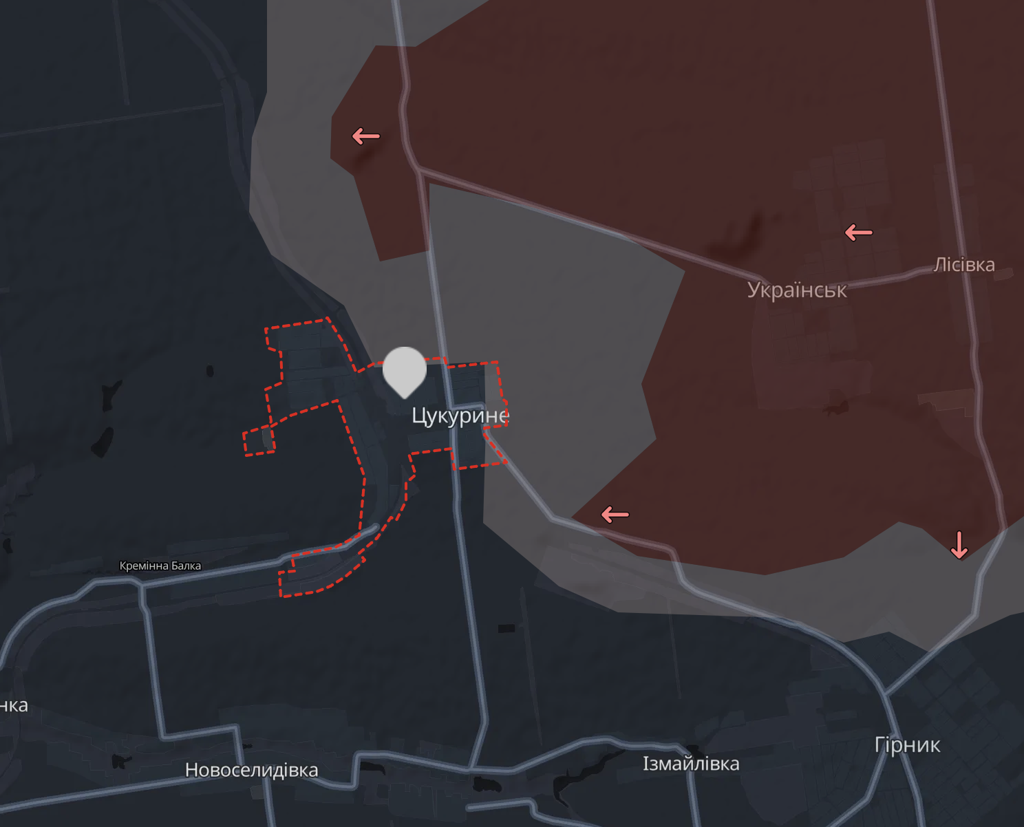 У суботу Deep State підтвердив російський поступ на південний схід від Цукуріно. Але за фактом, як заявляють українські військові, супротивник закріпився вже у південній частині селища.